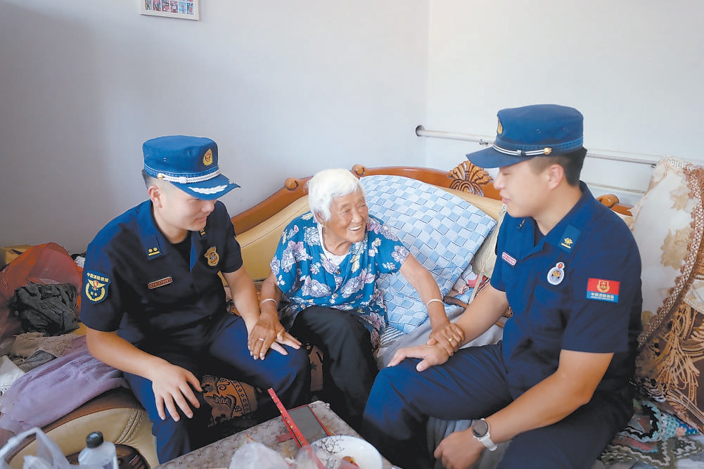“奶奶,您還記得我們嗎?去年洪災(zāi),您下來拿藥,是我們把您抬上了烽火臺(tái)。您的身體怎么樣?”李大媽的婆婆今年87歲,老人一看到黃志川和張誠鑫,就緊緊攥住他們的手舍不得松開,“我精神頭還不錯(cuò),孩子們放心。”