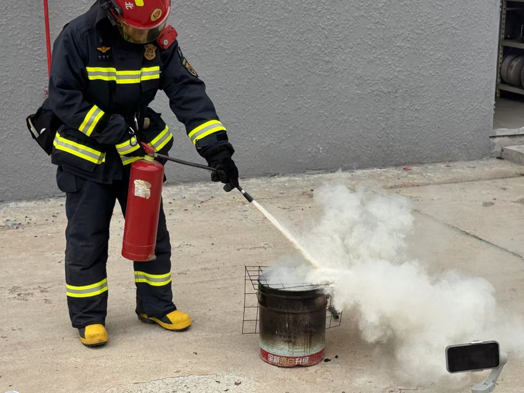 使用干粉滅火器并不能徹底將起火的充電寶熄滅。大興消防供圖